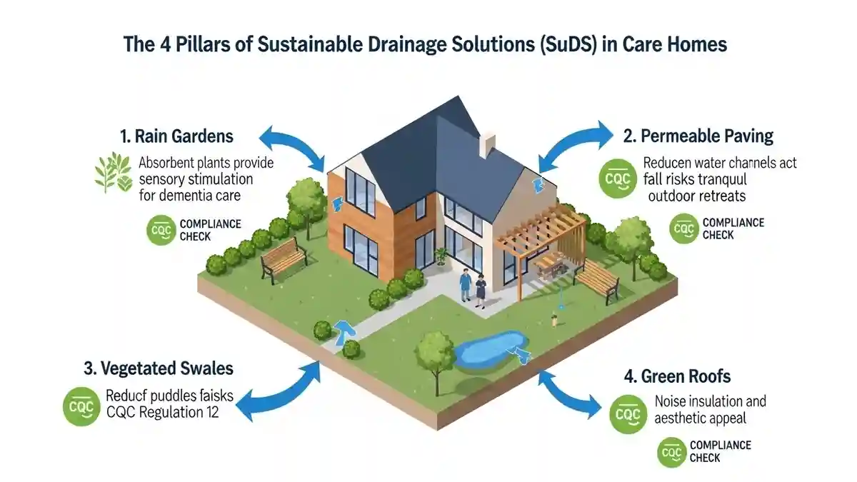 The future of sustainable drainage solutions CQC care home design is the integration of SuDS (Sustainable Drainage Systems). In Ascot, Policy EN18 of the Local Plan encourages SuDS to manage surface water runoff, which often plagues the surrounding area.